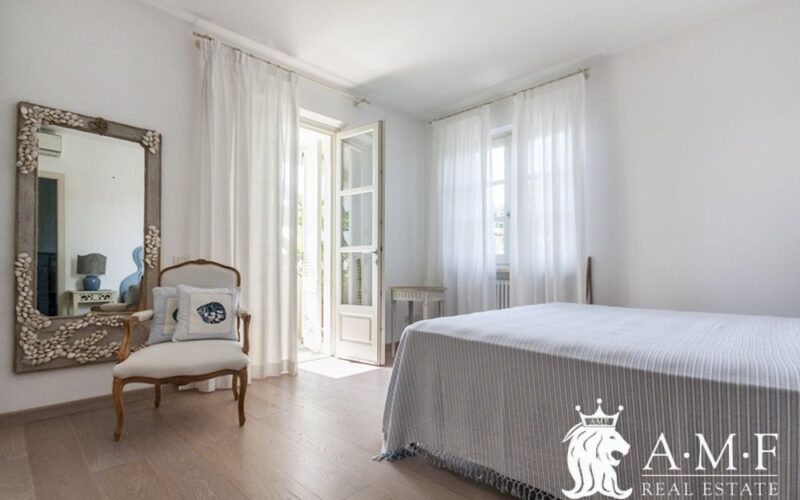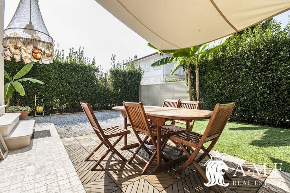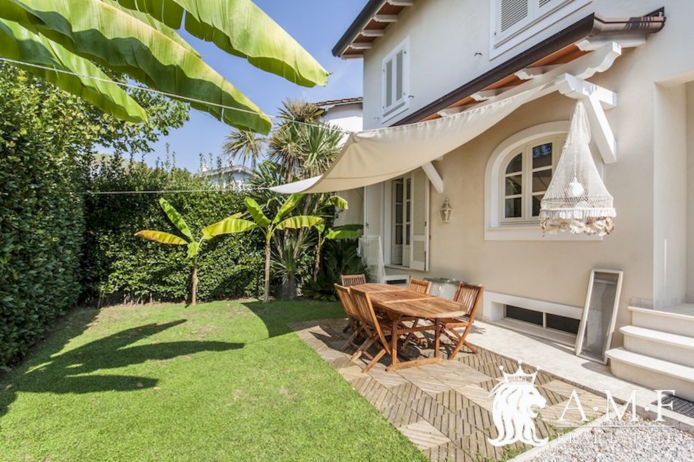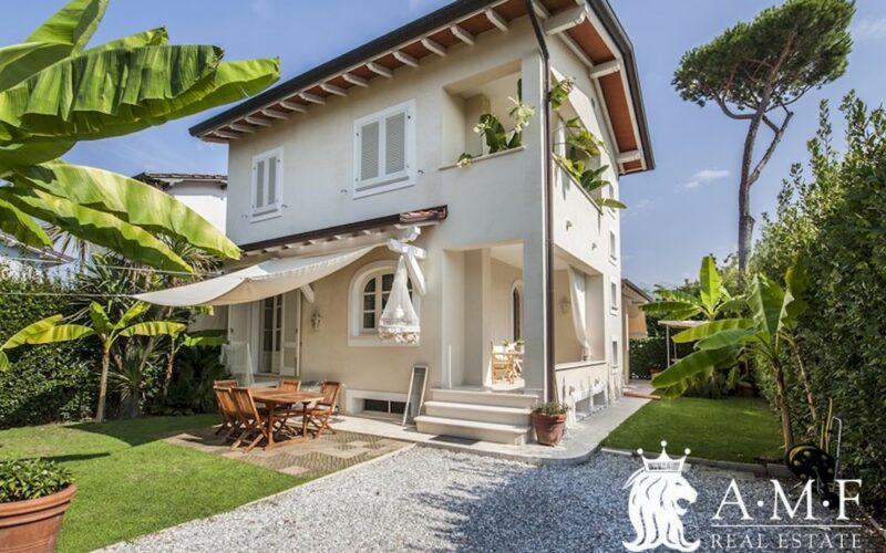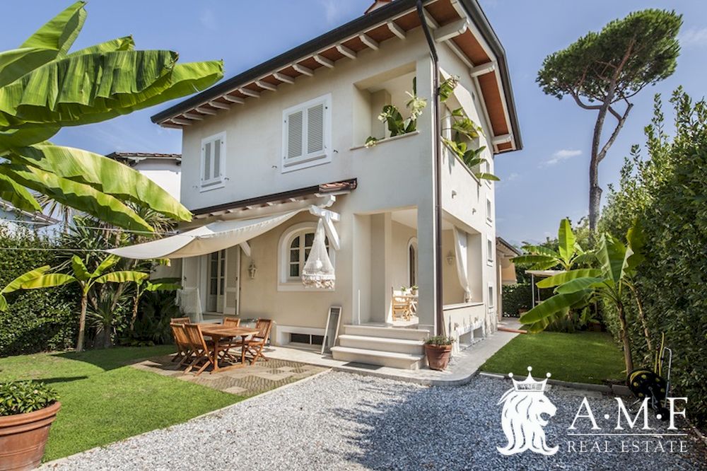 Bella villa singola, situata nel centro di Forte dei Marmi a soli 800 metri dal mare, in posizione privilegiata e residenziale, in contesto elegante e tranquillo. Al piano principale: ampia zona giorno, sala pranzo, cucina con accesso diretto alla veranda coperta e attrezzata, camera matrimoniale, un bagno. Al primo piano: tre camere matrimoniali e due bagni; al piano seminterrato: zona lavanderia, camera da letto per il personale, un bagno.