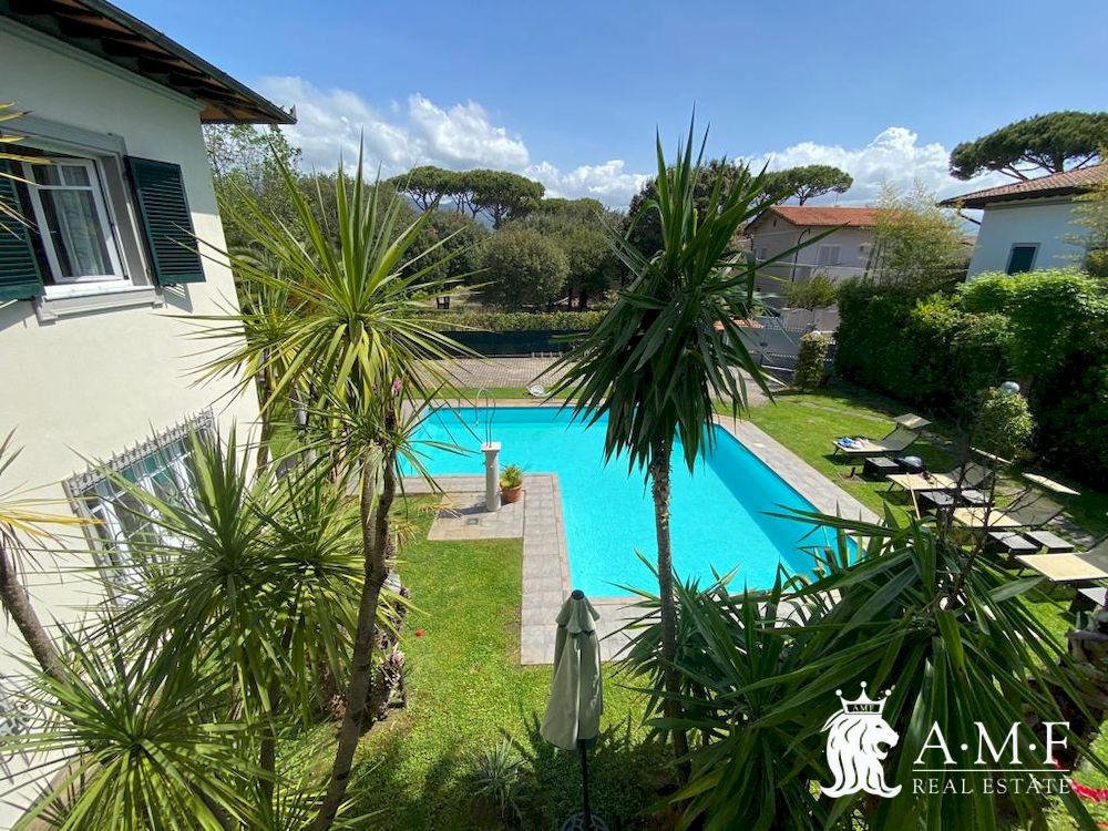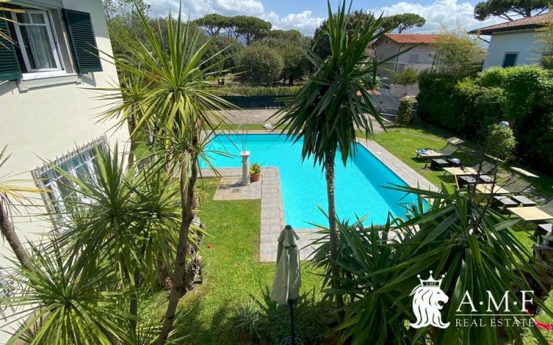 Elegante villa di dimensioni importati con piscina a solo 200 mt. dal mare al confine tra il centro e la zona di Vittoria Apuana. La villa è composta da 8 camere da letto e 7 bagni, per un totale di circa 500 mq. circa, disposta su due piani fuori terra, senza piano interrato.